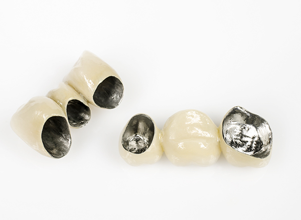 メタルボンドとは、金属の裏打ちに表面をセラミックで貼り付けたものです。耐久性が高く、奥歯など、強い力が加わる部分に用いられることが多いです。
